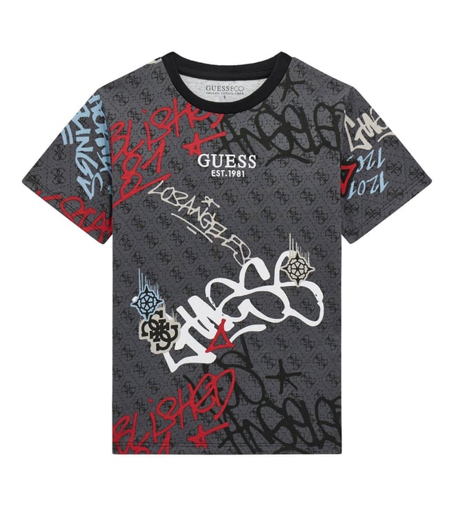 Guess Grey Stream Printed Regular Fit T-Shirt