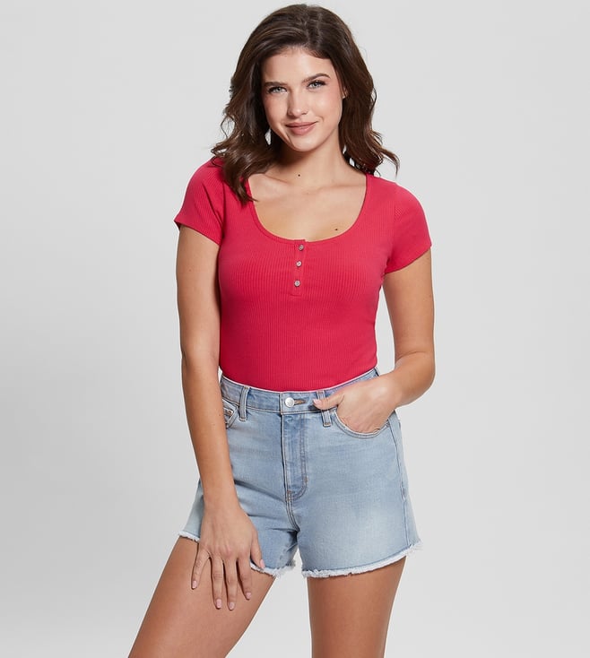 Men's Peach Cotton Blend Solid Slim Fit Spread Collar Short Sleeve Polo T-Shirt