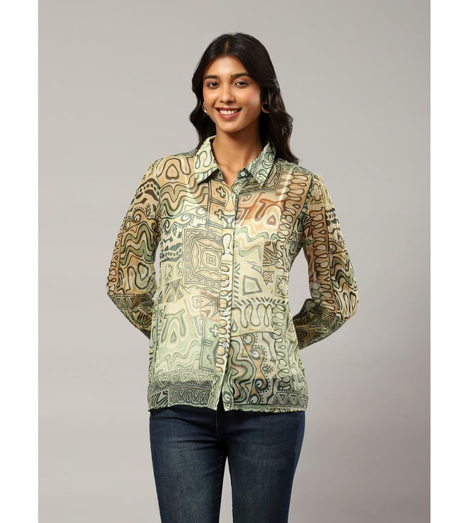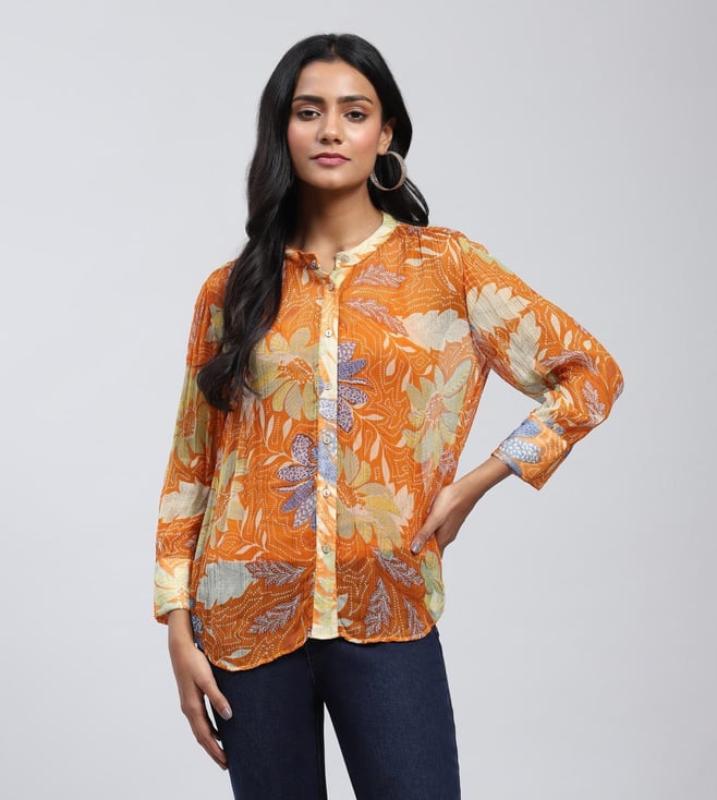 Orange Printed Button-Down Shirt