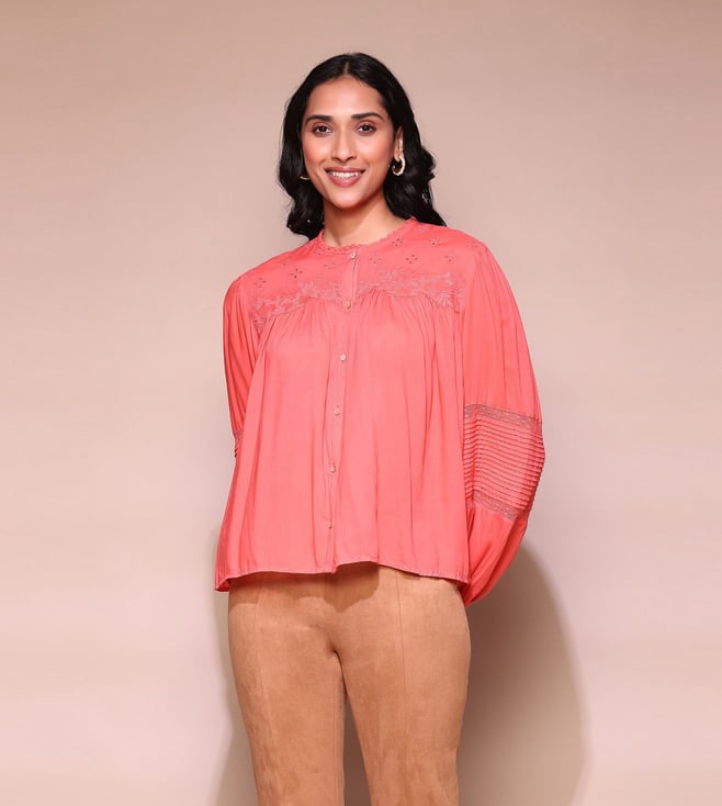 Coral Modal Shirt With Lace-Inserts