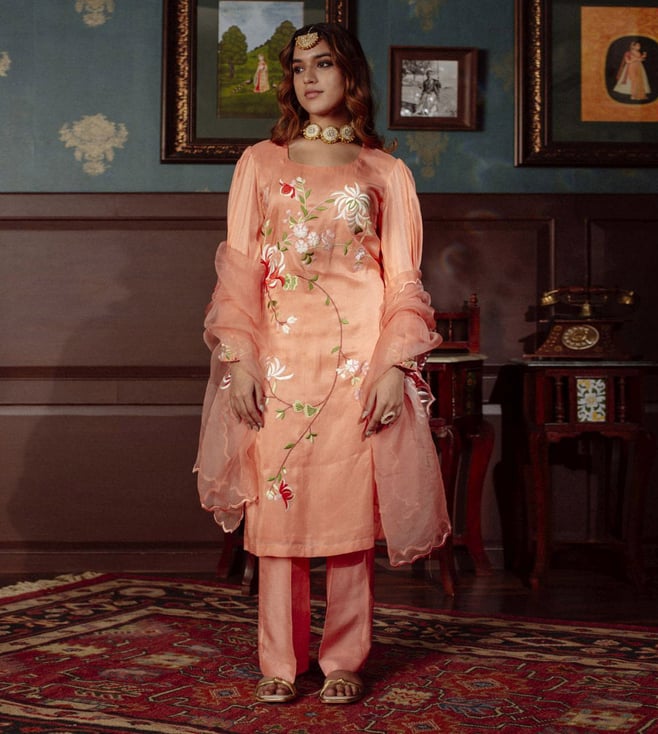 Peach Saad Tapas Kurta with Pant and Dupatta