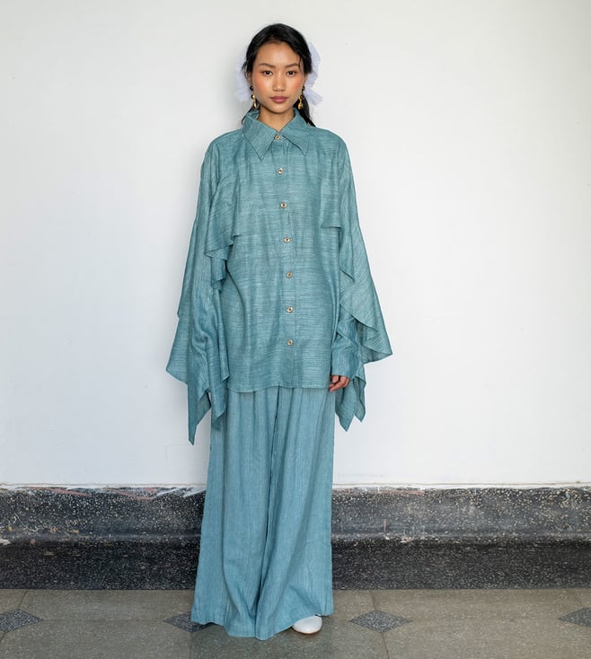 Marine Teal Blue Linen Relaxed Fit Cord Set