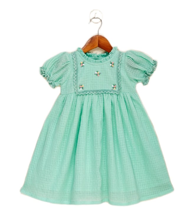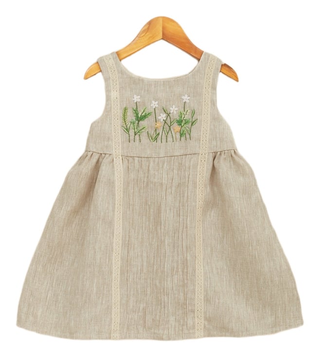 Girls Head Over Heels Green Linen Embroidery Dress