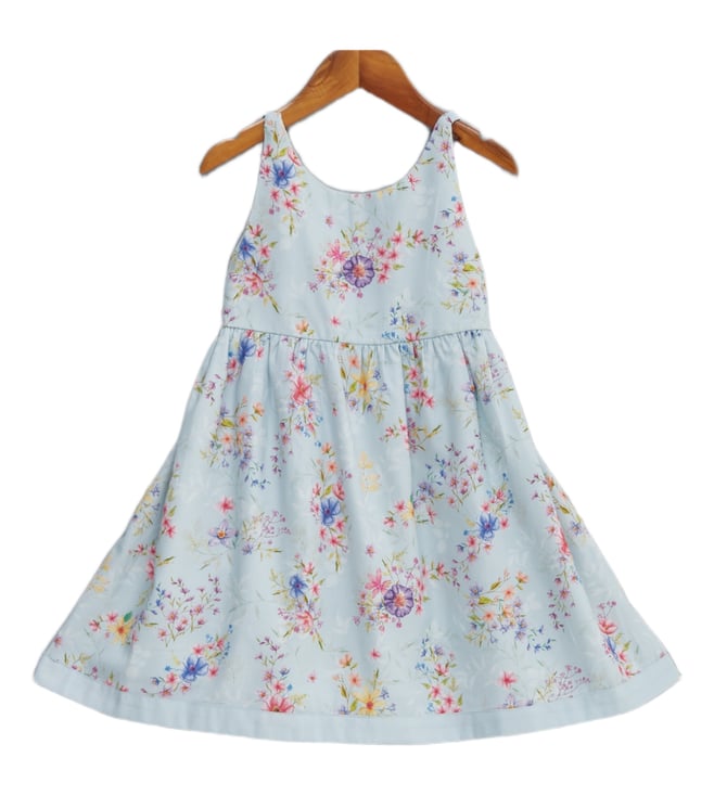 Kids Blue Floral Regular Fit Dungarees