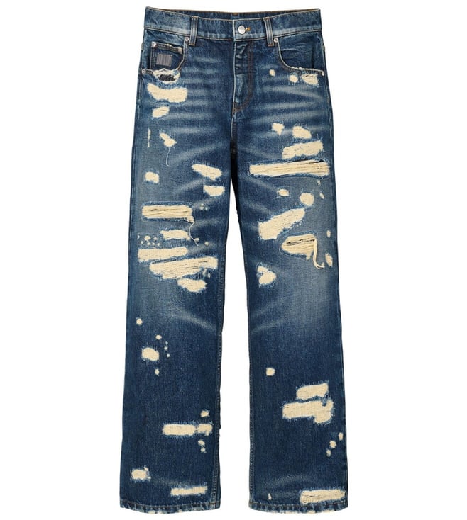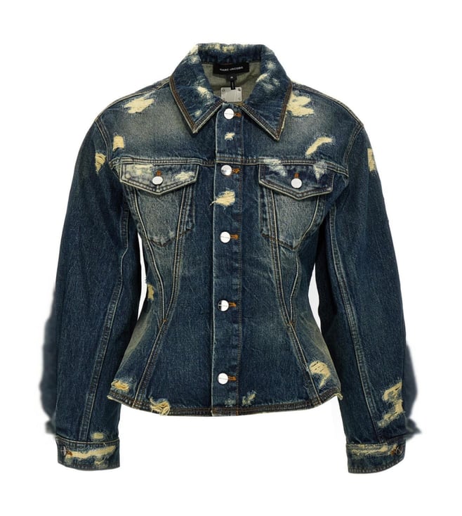 Blue The Rip And Repair Fluted Denim Printed Jacket