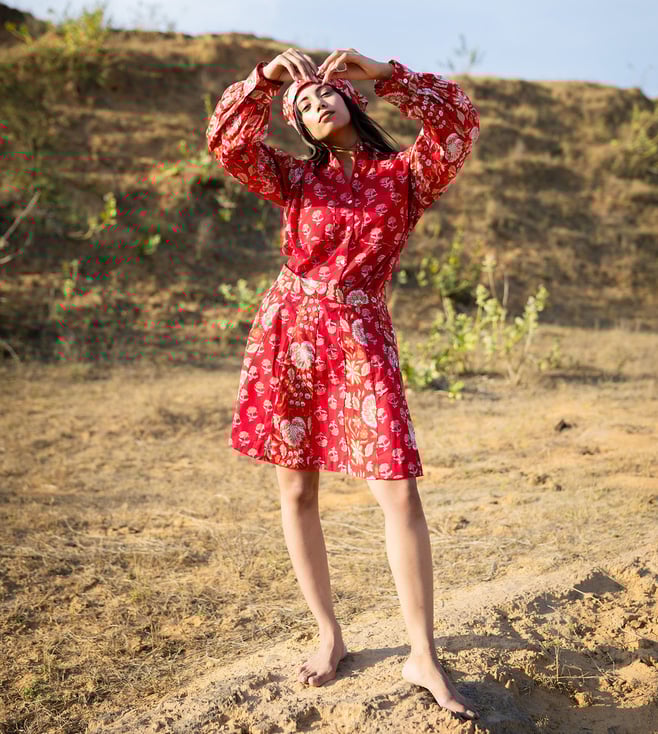 White Ilahi Bon Bon Printed Cotton Mini Shirt Dress
