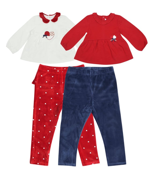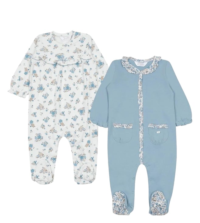 Kids White & Blue Floral Print Regular Fit Romper (Pack of 2)