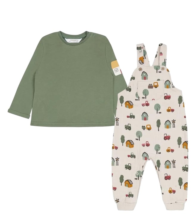 Kids Multi Forest Print Regular Fit Dungaree & T-Shirt Set