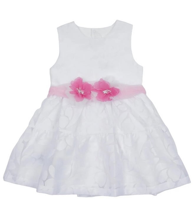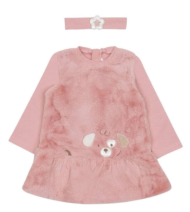 Kids Pink Embroidered Regular Fit Dress & Headband Set