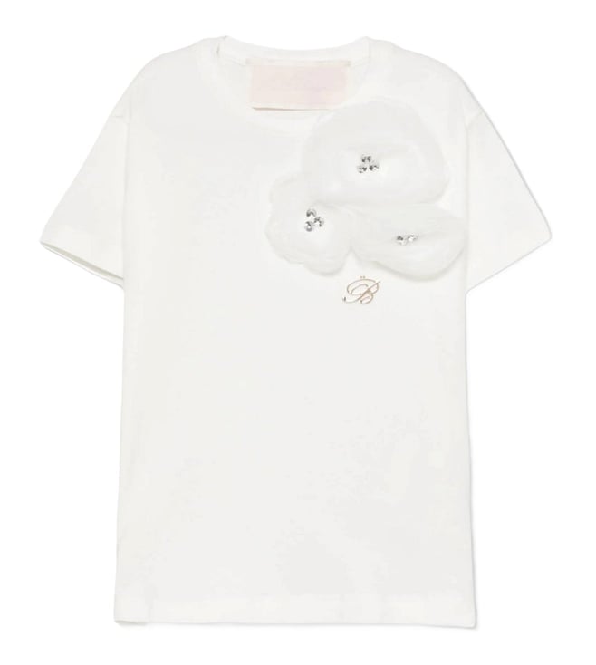 Kids White Rhinestone Logo Regular Fit T Shirt