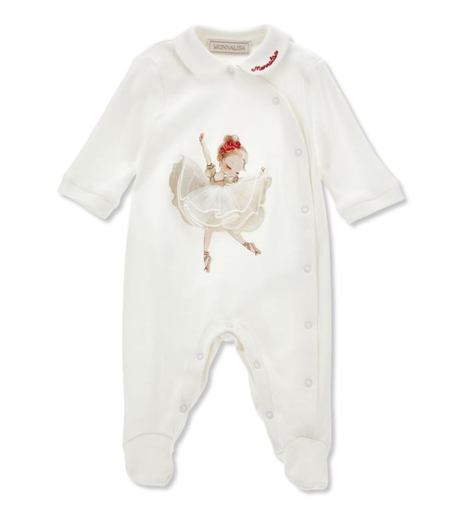 Baby Girls White & Pink Printed Fitted Clothing Set