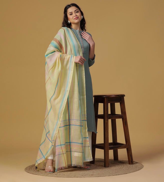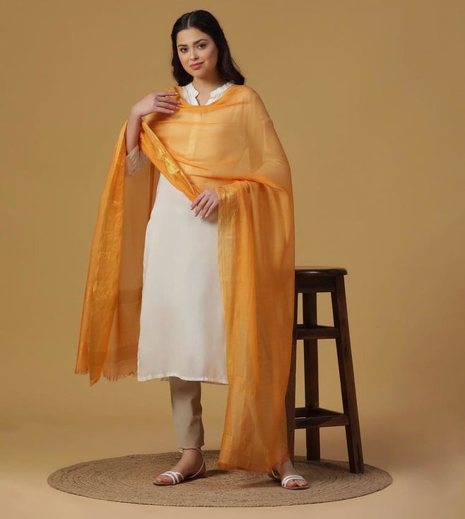 Mustard Dobby Woven Zari Dupatta
