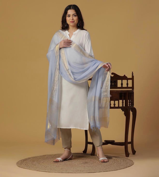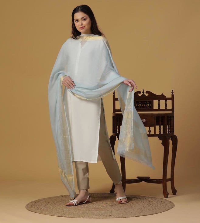 Sky Blue Dobby Woven Zari Dupatta