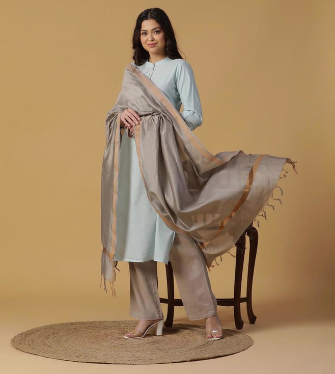 Light Grey Silk Blend Dobby Dupatta