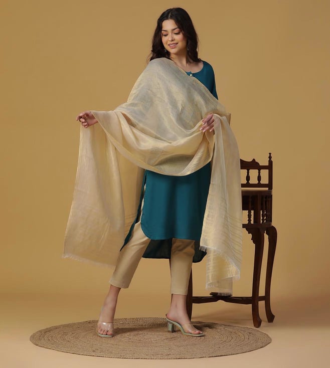 Beige Jacquard Silk Blend Dupatta