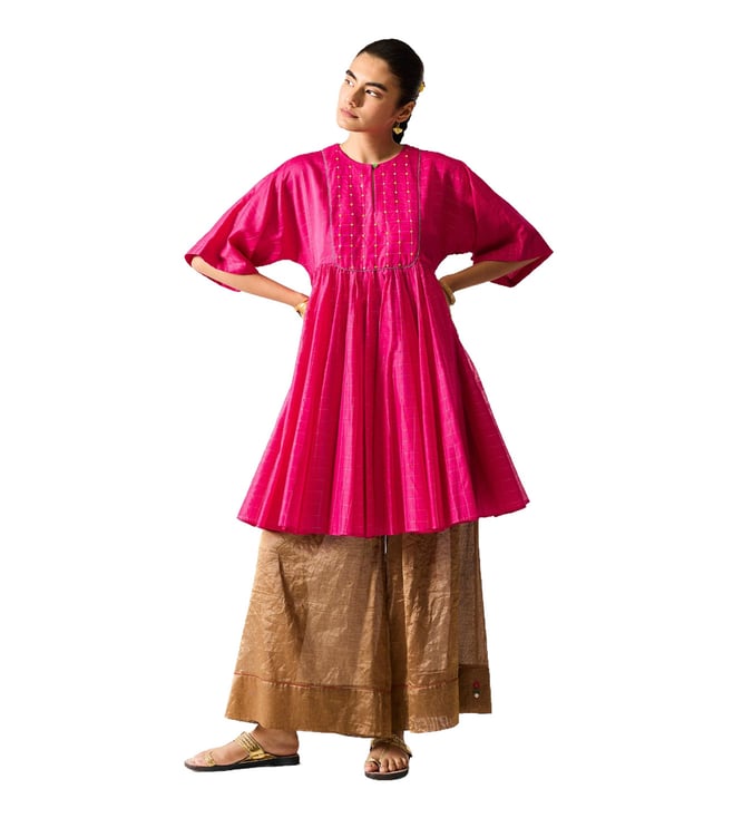 Luna Afghan Kurta - Fuchsia & Gold Embroidered