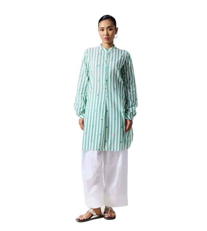 Basic Mid length Kurta - Green & White Embroidered