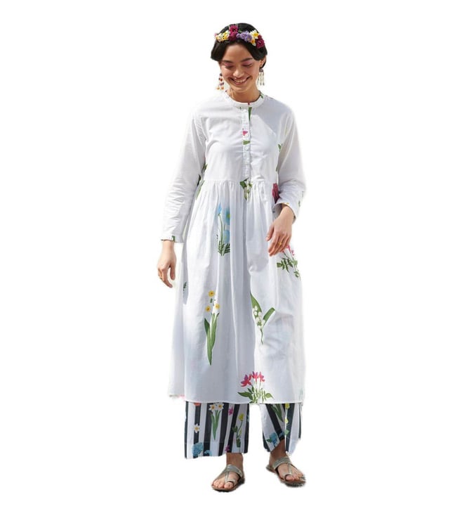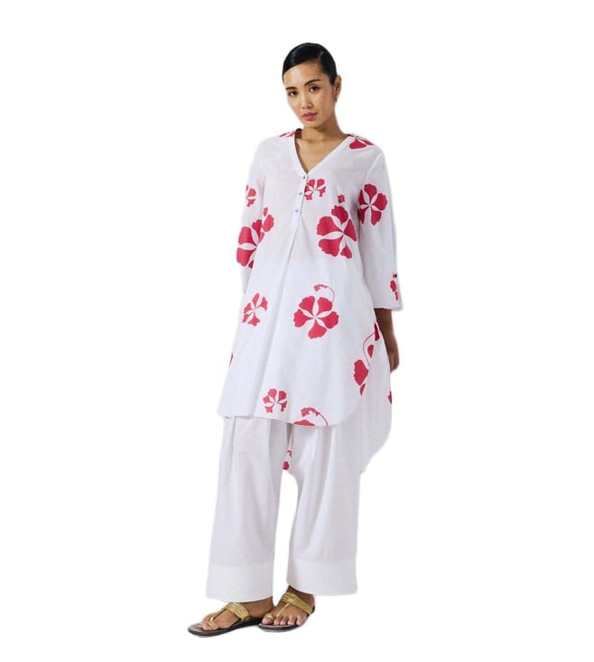 Pampa Kurta - White & Red Printed
