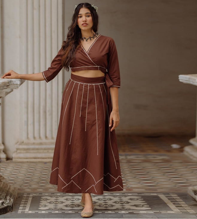 Cocoa Amour Gota Patti Wrap Top With Skirt