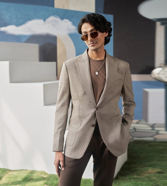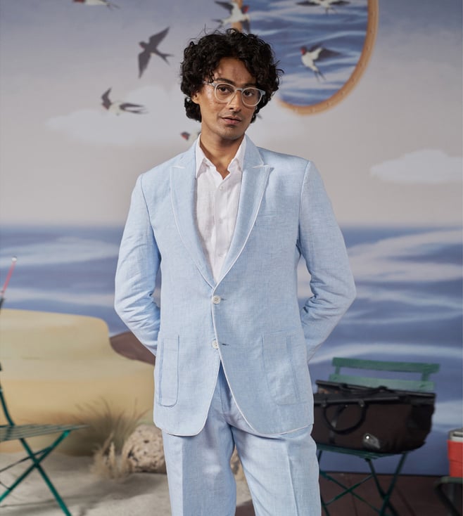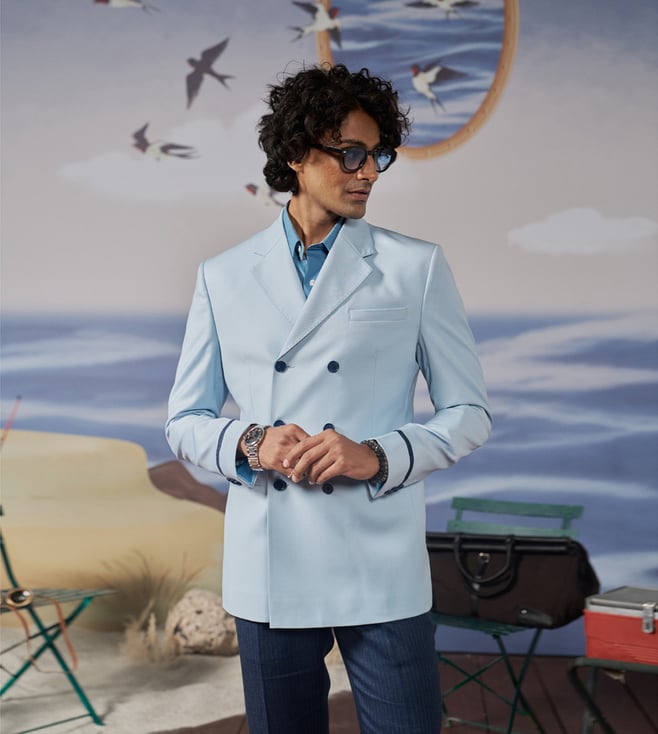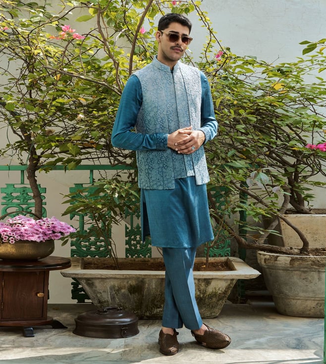Navy Blue Embroidered Cotton Silk Slim Fit Bandi
