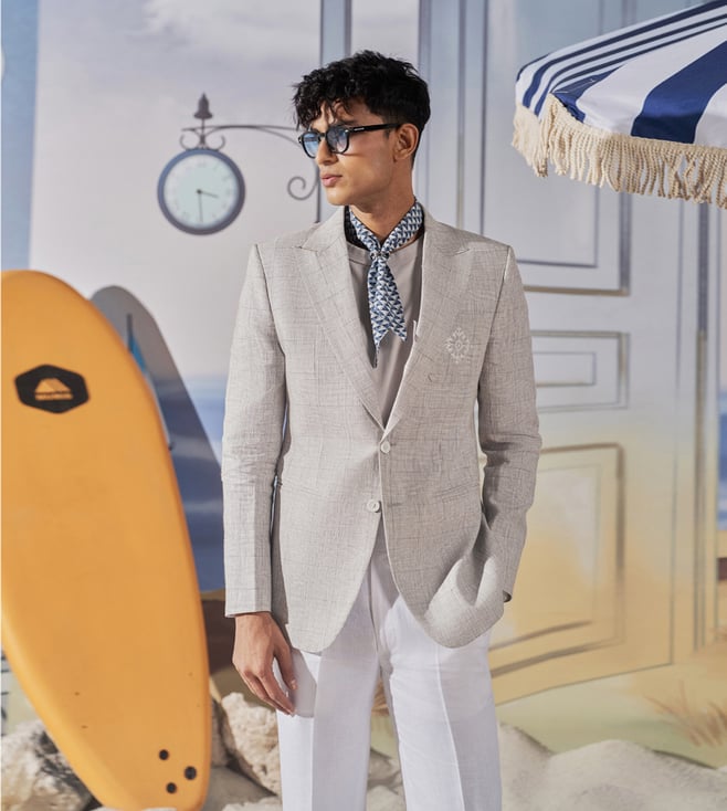 Light Pink Embroidered Cotton Silk Slim Fit Bandi