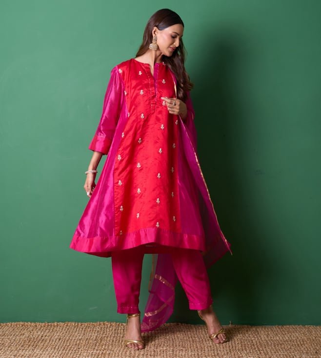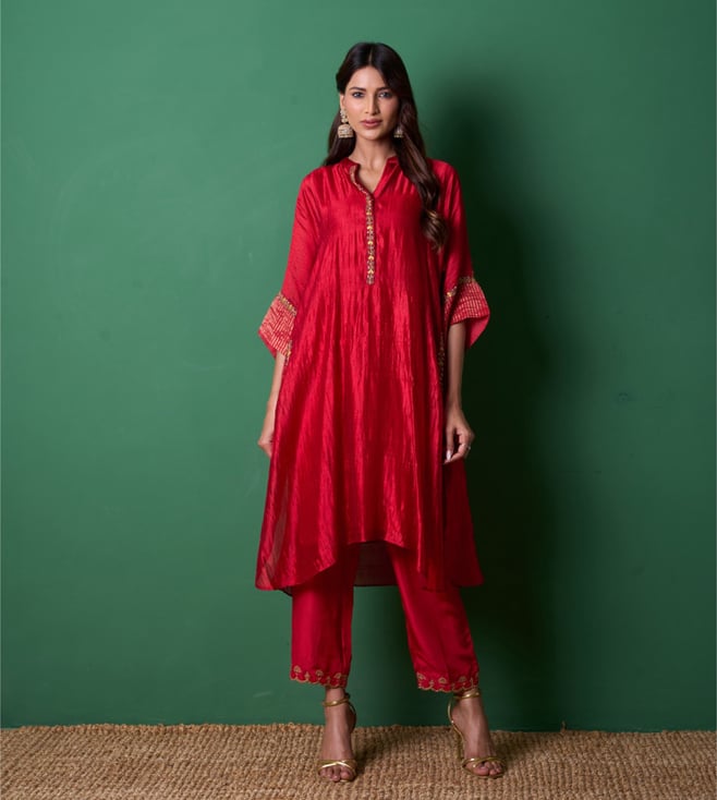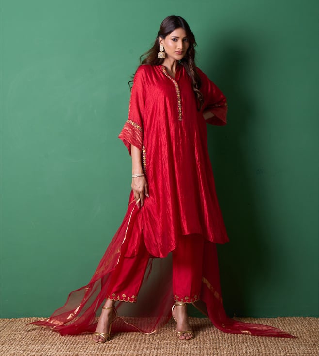 Red Euphoria Radiance Regular Fit Kurta with Pants and Dupatta