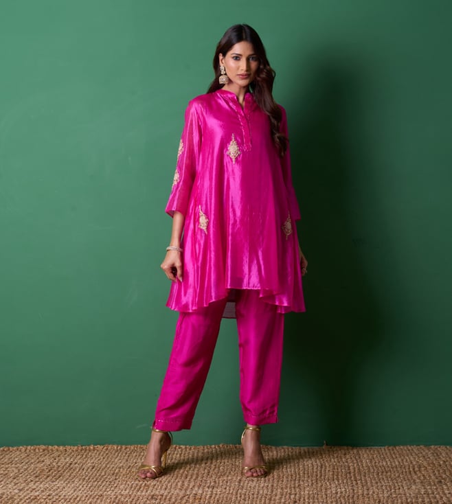 Pink Euphoria Paradise Embroidered Regular Fit Kurta with Pant