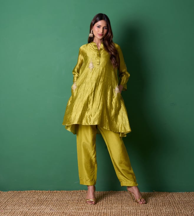 Mehandi Euphoria Paradise Embroidered Regular Fit Kurta with Pant