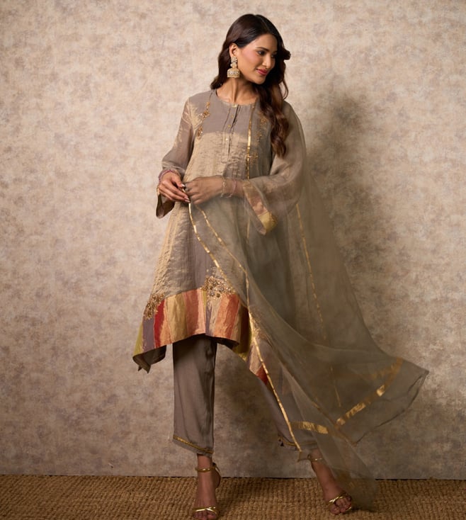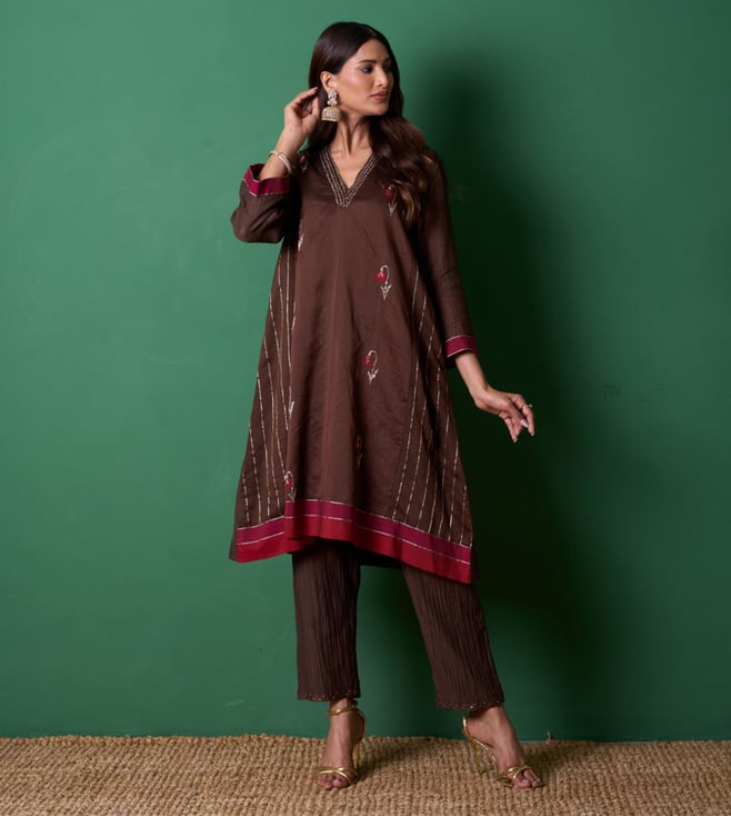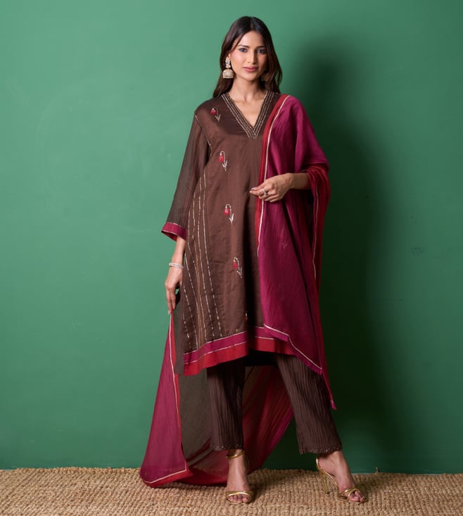 Brown Euphoria Glee Embroidery Regular Fit Kurta with Pants and Dupatta