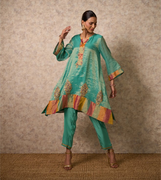 Sea Green Euphoria Zing Embroidered Regular Fit Kurta with Pant