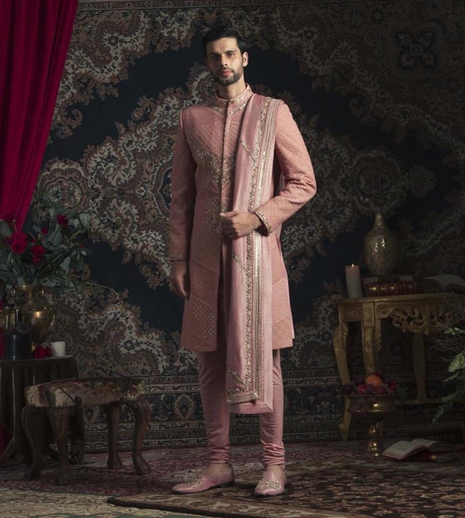 Bottle Green Tone On Tone Embroidery Tuxedo with Belt & Bow Tie