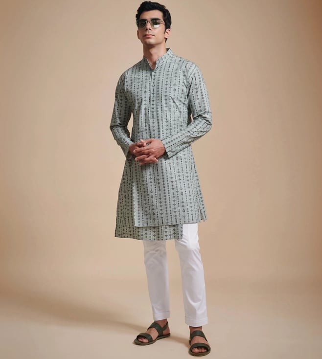 Off White & White The Short Concealed Placket Achkan with Pant