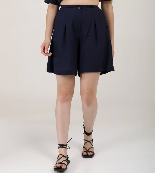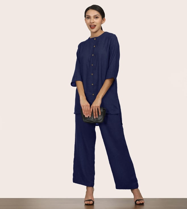 Navy Blue Linen Relaxed Fit Shirt & Pant