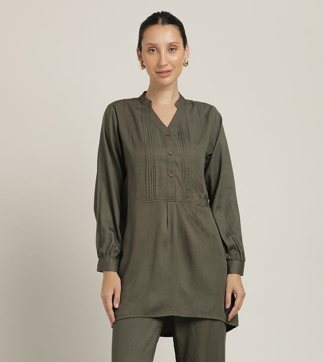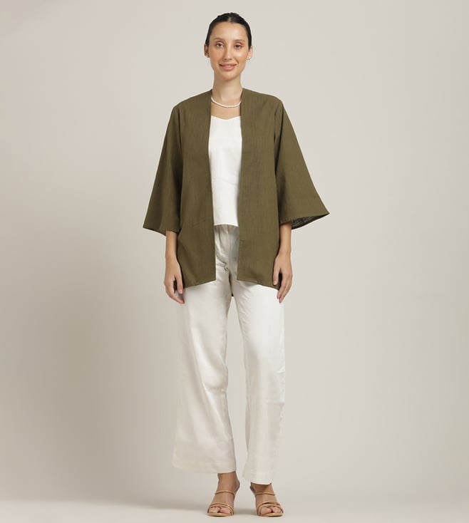 Olive And Cream Overlay Regular Fit Co-Ord Set