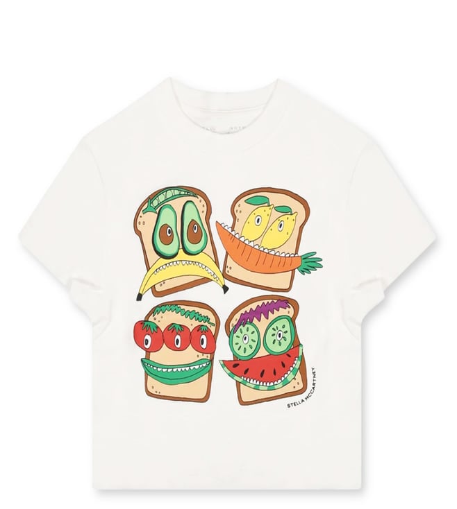 Kids White Burger Monster Print Regular Fit T-Shirt