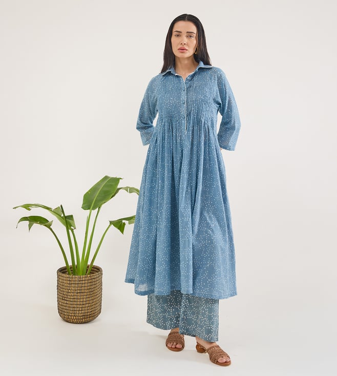 Blue Cotton Mulmul Confetti Dot Prints Co-Ord Set