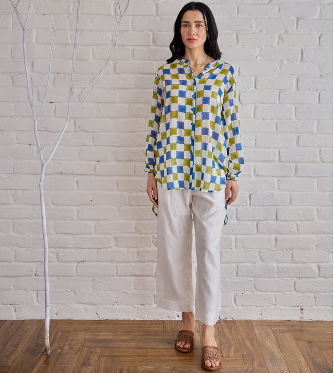 Multicolour Cotton Mulmul Block Printed Checks Shirt