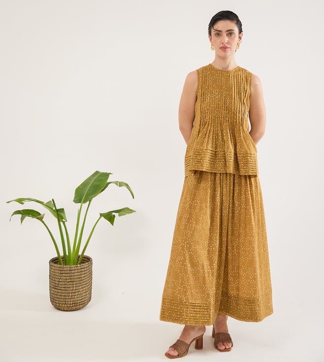 Mustard Cotton Mulmul Confetti Dot Prints Skirt