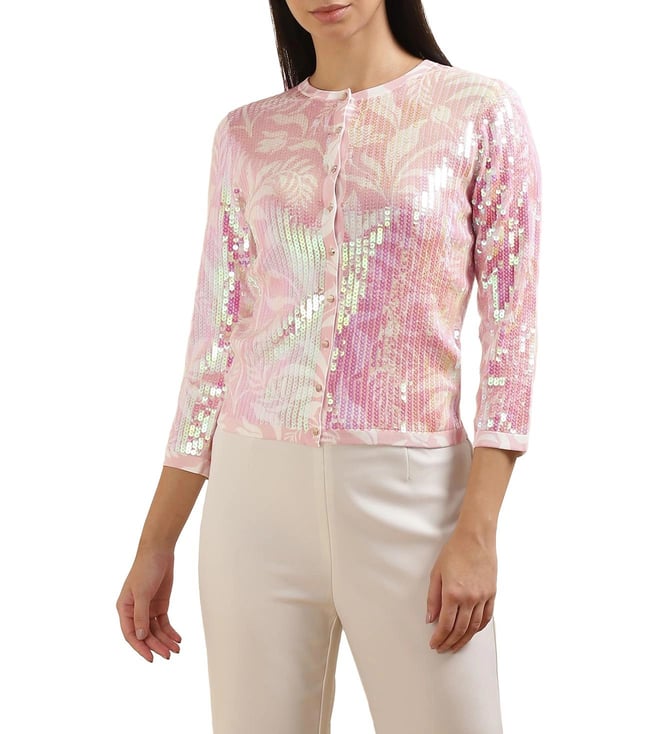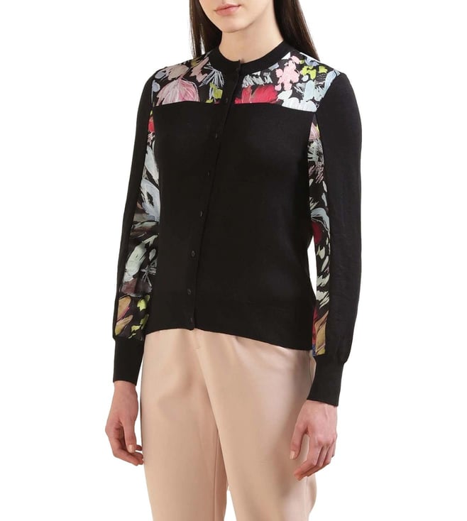 Ted-Baker Women Black Woven Printed Trim Cardigan