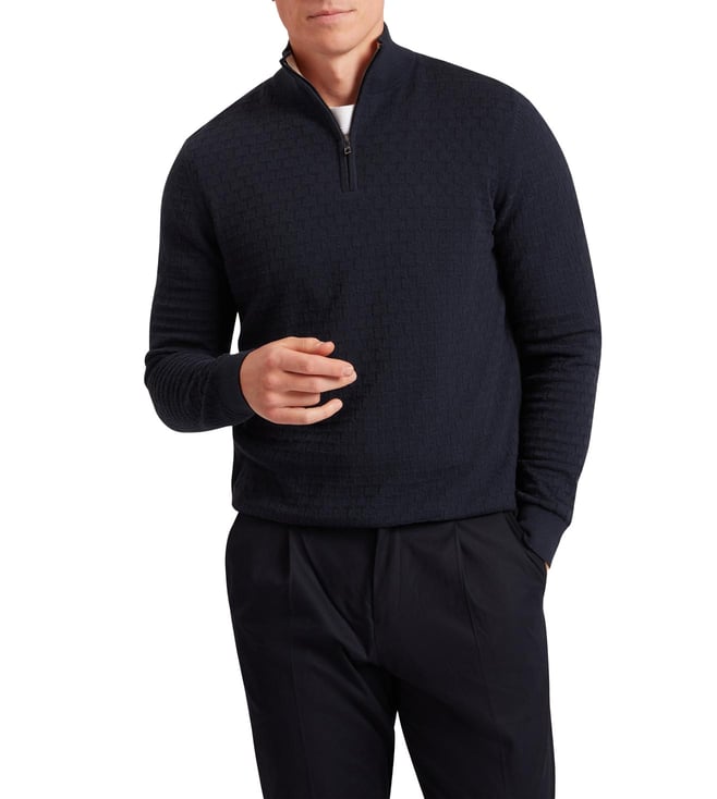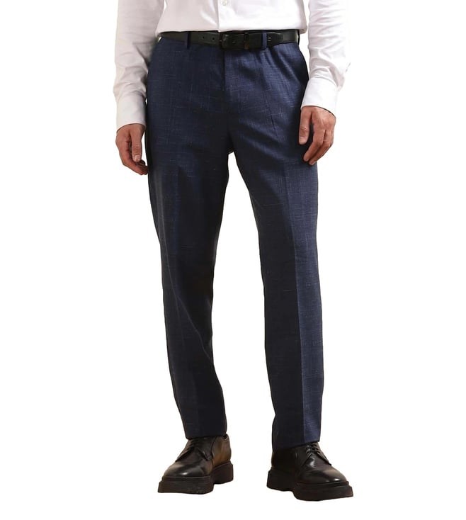 Ted-Baker Dark Blue Textured Tailored Trousers
