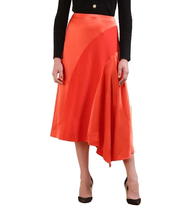 Ted-Baker Women Red Satin Midi Skirt With Asymmetric Hem