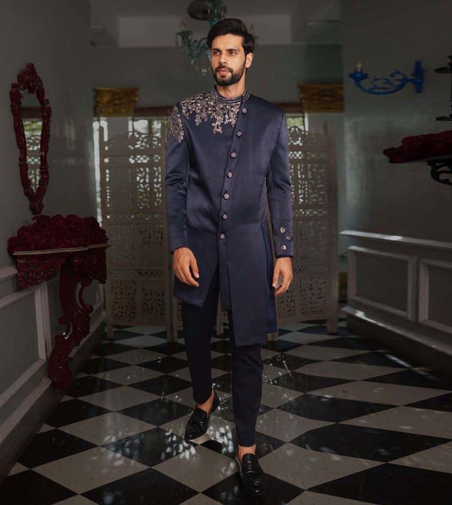 Mid-Night Blue Rameo Nil Bandhgala with Pant
