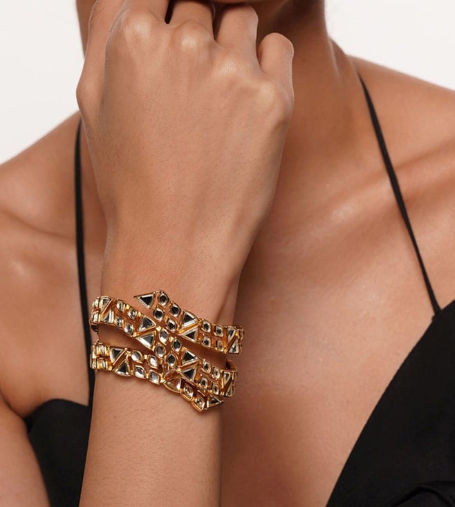Gold Bright Young Things Bling Multi-crystal Bezel Cuff 18kt Gold Plating