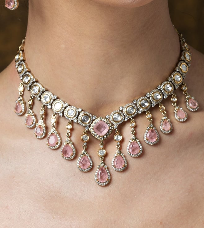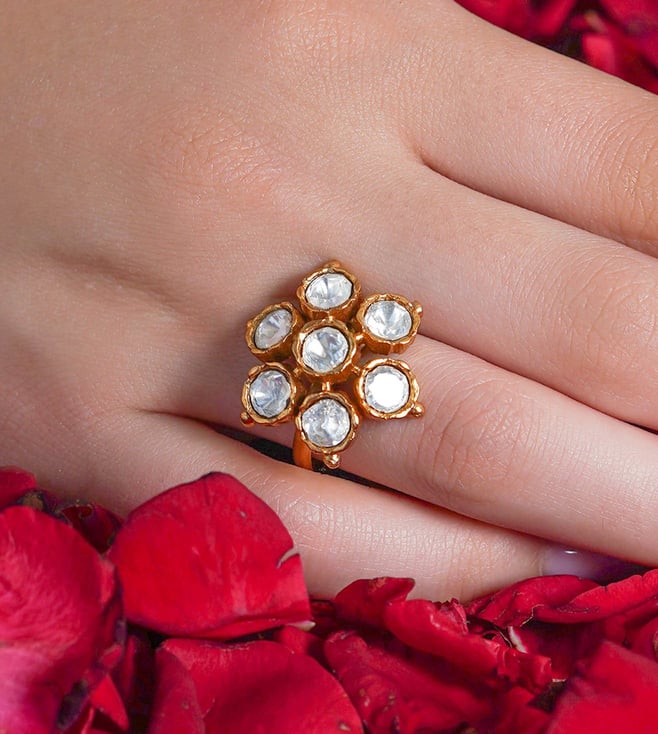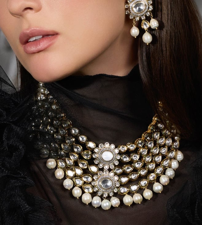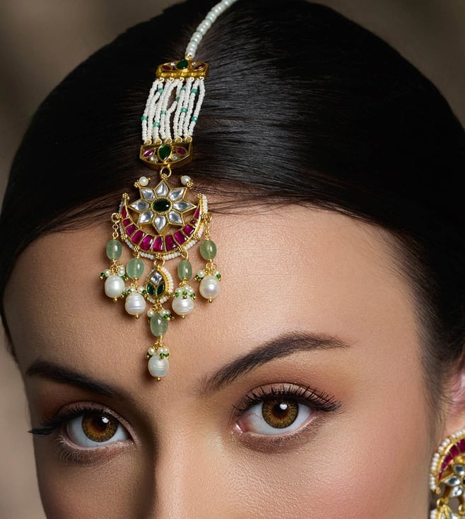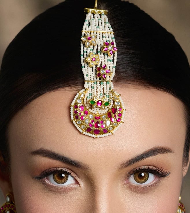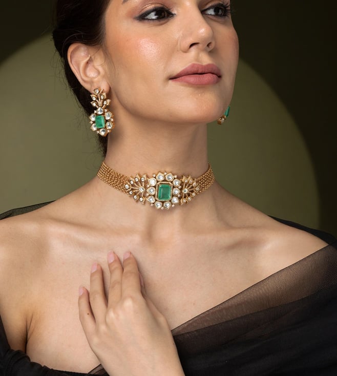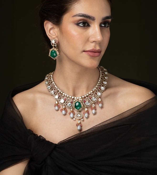 Golden, White & Green Royal Kundan Polki Chand Baali Earrings