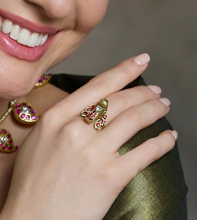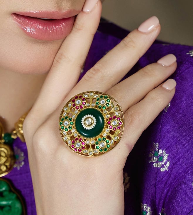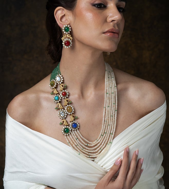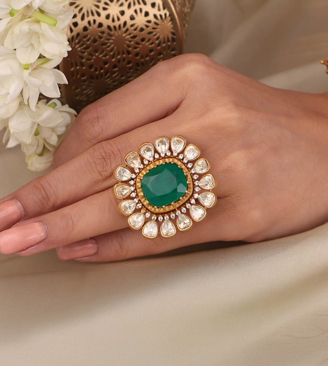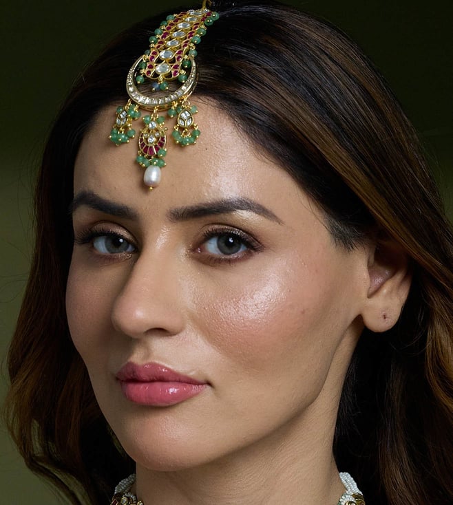 Green, Gold & White Polki And Green Beads Jhumka Earrings