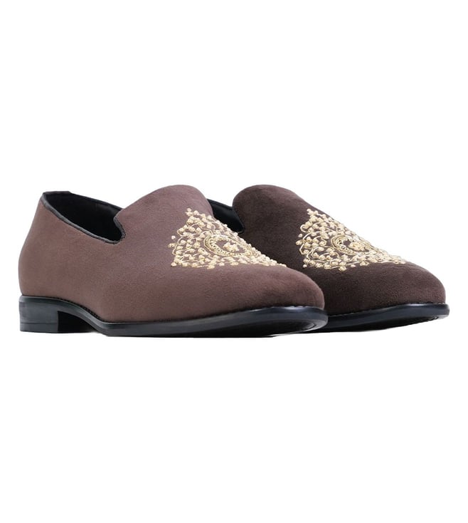 Men's Nouveau Brown & Black Embroidered Nawabi Cross Strap Sandals