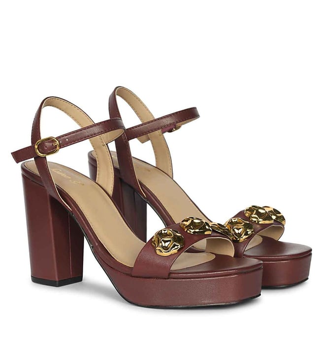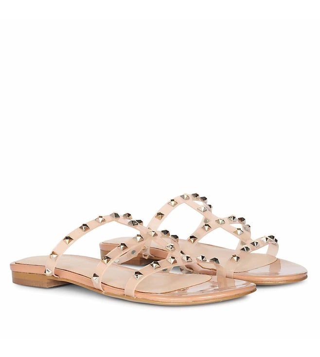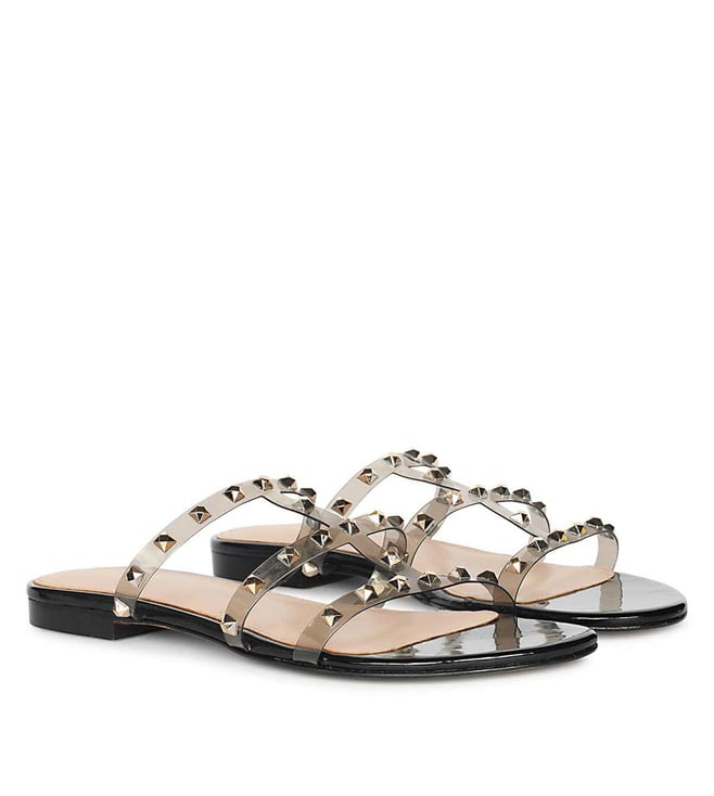 Multi Color Stone Black Leather Flat Sandals