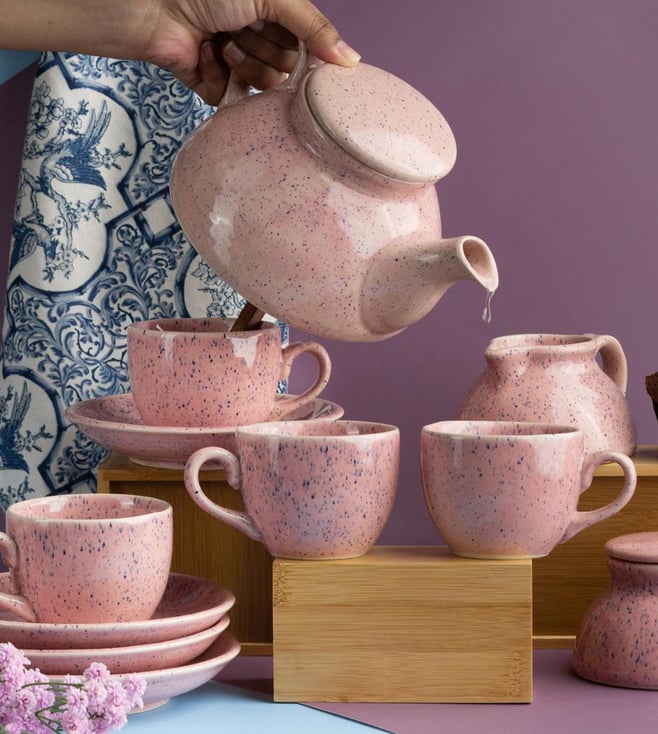 Pink Sarvottam Ceramic Cups and Saucers - Set of 2