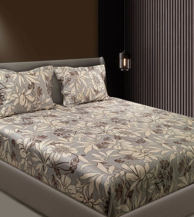 Grey Cotton 550 TC Double Bedsheet with 2 Pillow Covers