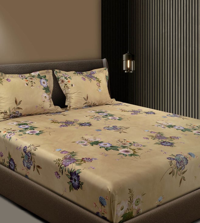 Beige Cotton 550 TC Double Bedsheet with 2 Pillow Covers